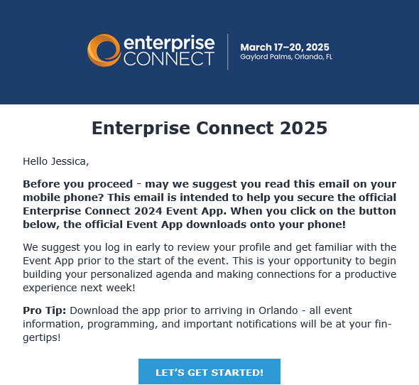 Please note – you must be registered to attend Enterprise Connect to be able to access the event app.