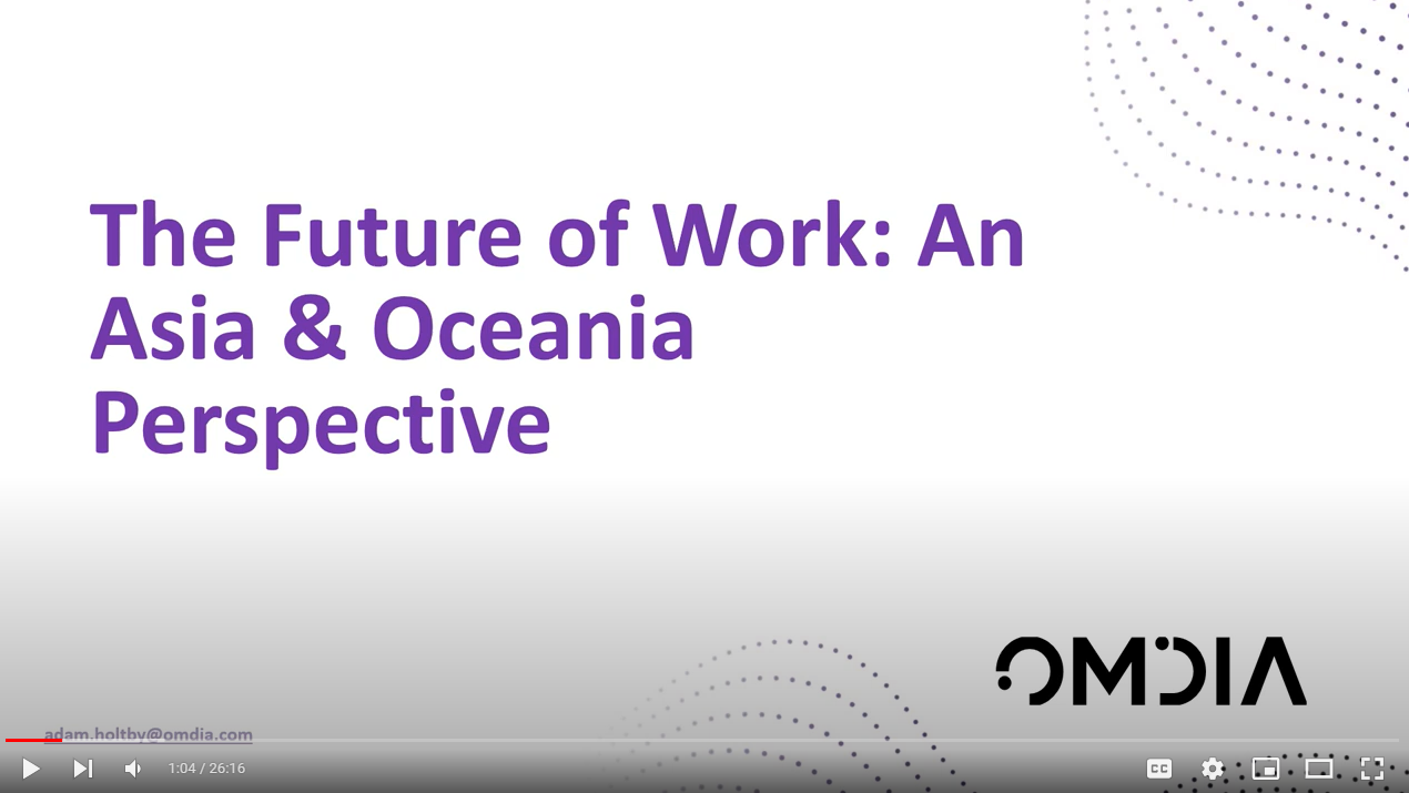 View this free session from Enterprise Connect 2023 presented by Omdia research analyst Adam Holtby. Holtby presents the results of a recent survey of APAC-based enterprises regarding the future of work. Learn how businesses throughout the region are dealing with the challenges, and where they see the future trends heading.