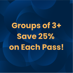 Promotional codes cannot be combined with Government and Non-Profit Discount Offers. The event organizers reserve the right to determine eligibility for any promotional/group offers. Discounts do not apply to Summit passes.